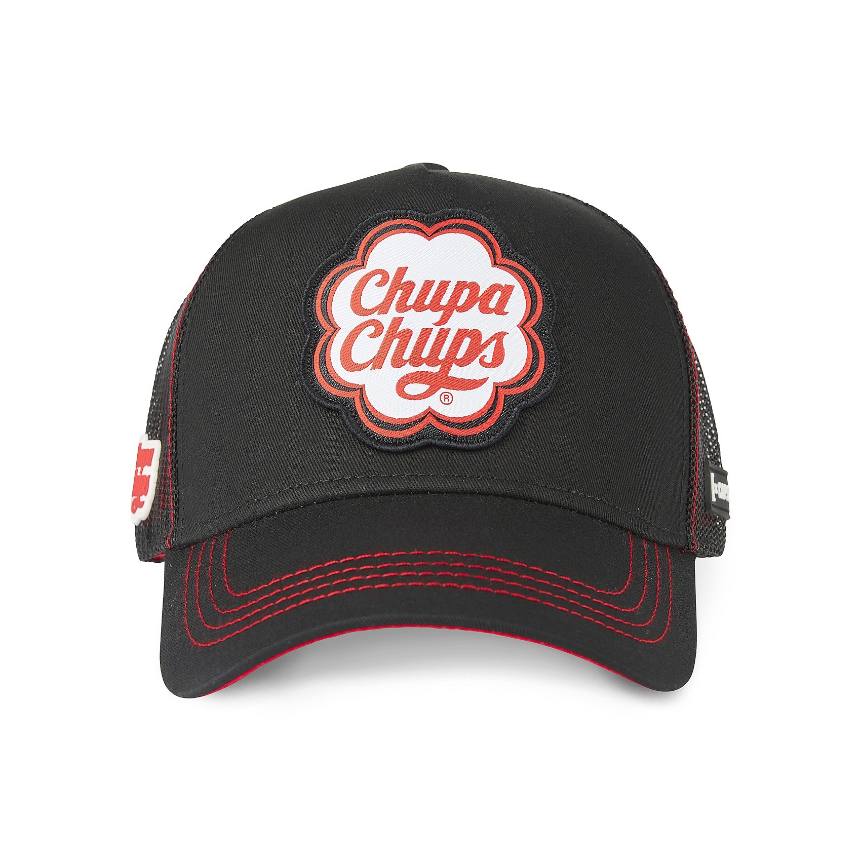 Herrenkappe Capslab Chupa Chups Trucker * Material: 50 % Baumwolle, 50 % Polyester * gebogene Kappe * Patch auf der Vorderseite * hinterer Netzteil * der Umfang der Kappe kann mit einem Kunststoffband im Bereich von ca. 53-60 angepasst werden cm * Snapback