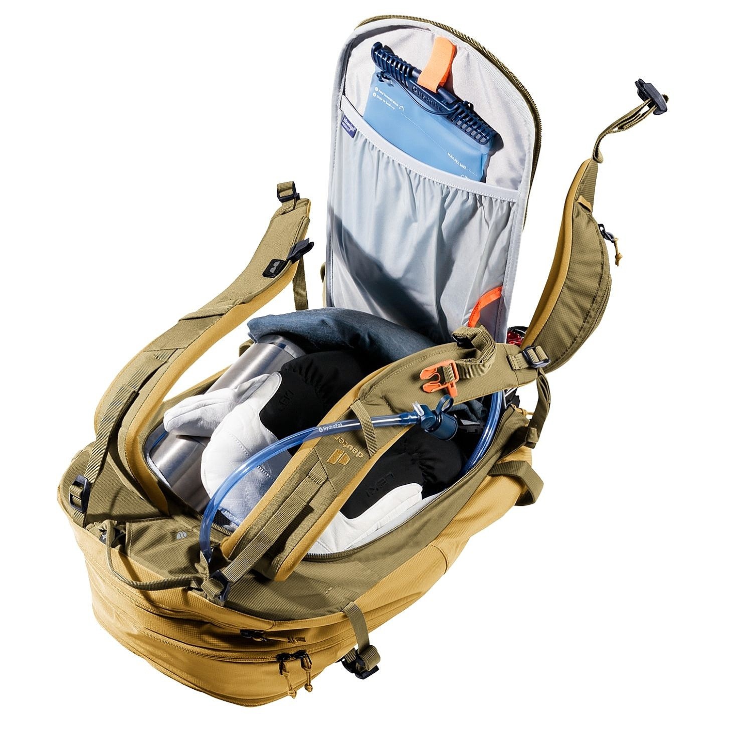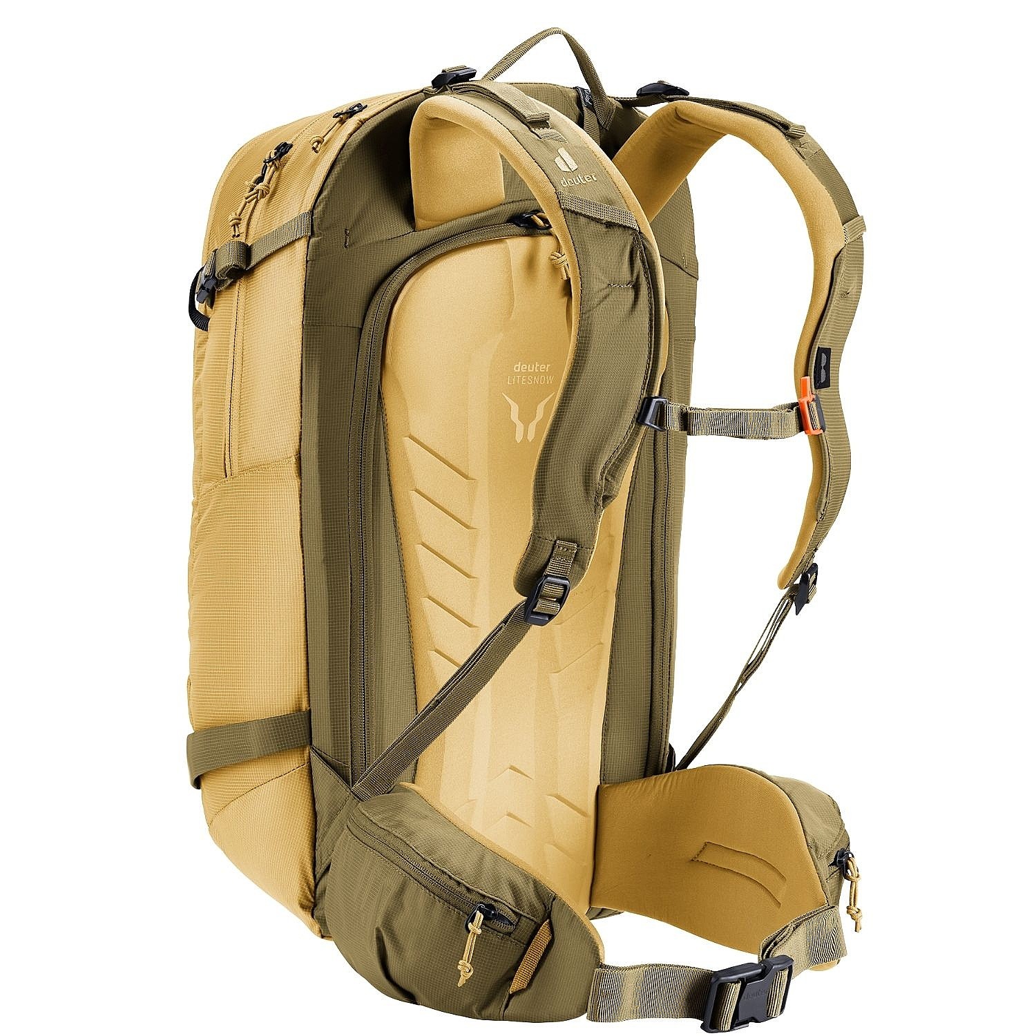 - Das Deuter LiteSnow Rückensystem ist ultraleicht, extrem angenehm zu tragen und wasserdicht. Das liegt an den schneedurchlässigen Materialien und der Konstruktion. Die spezielle Form der Rückenpolsterung mit Lücken zwischen dem EVA-Schaum und dem Spandex-Material, das Schnee ableitet und keine Feuchtigkeit aufnimmt, sorgt für ganztägigen Tragekomfort.